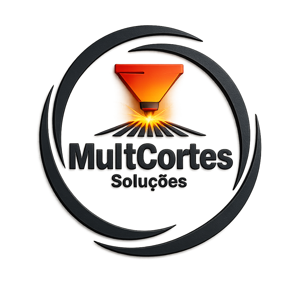 Corte a laser de alta precisão em aço carbono, inox e galvanizado, aplicado a projetos de comunicação visual e peças técnicas.